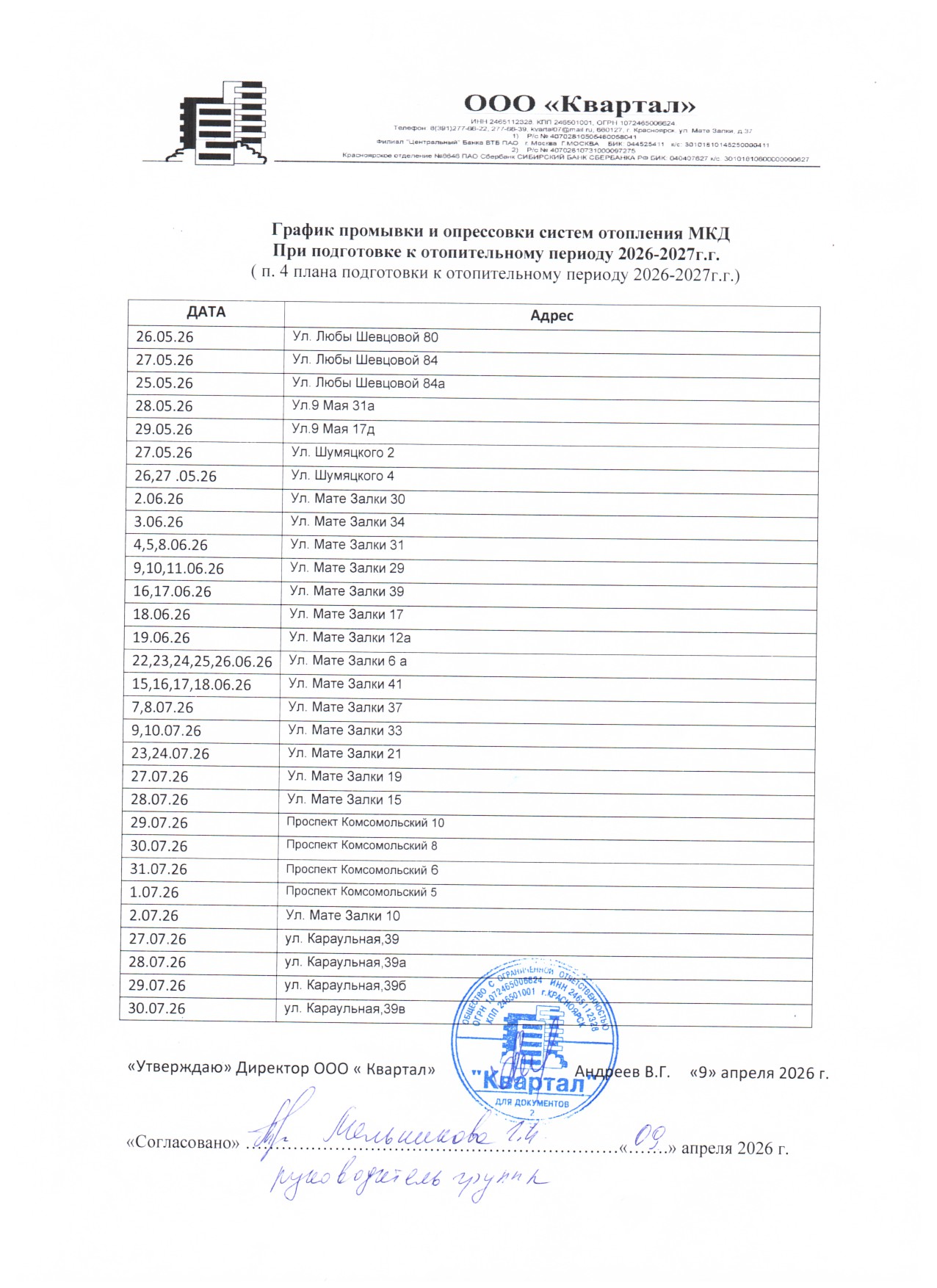 График промывки и опрессовки систем отопления МКД